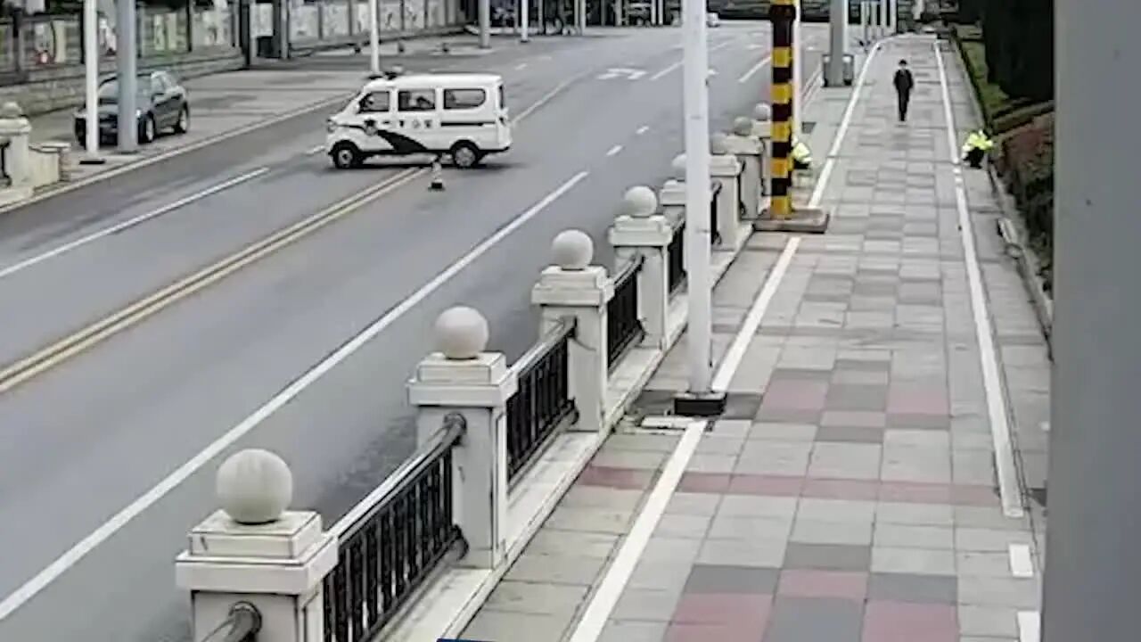 执勤民警蹲路边吃饭,路过女子鞠躬致敬